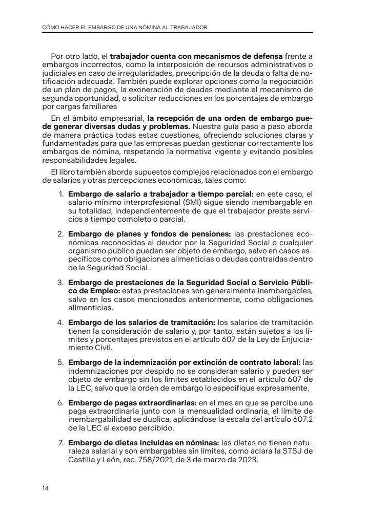 Aborda la gestión del embargo desde la perspectiva de la empresa, explicando las obligaciones y responsabilidades legales. Su contenido práctico ayuda a evitar errores que podrían derivar en sanciones o responsabilidades solidarias.