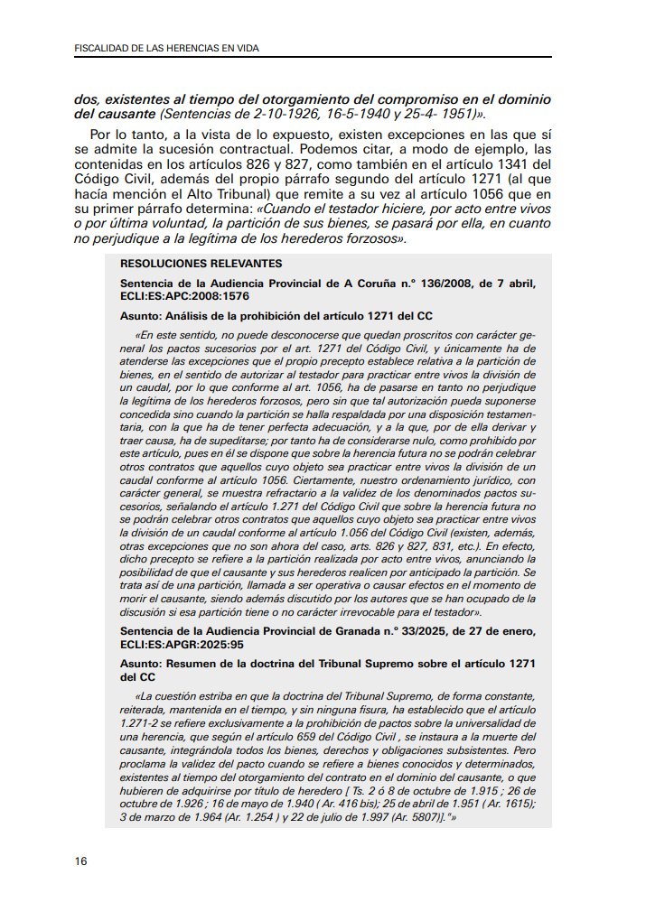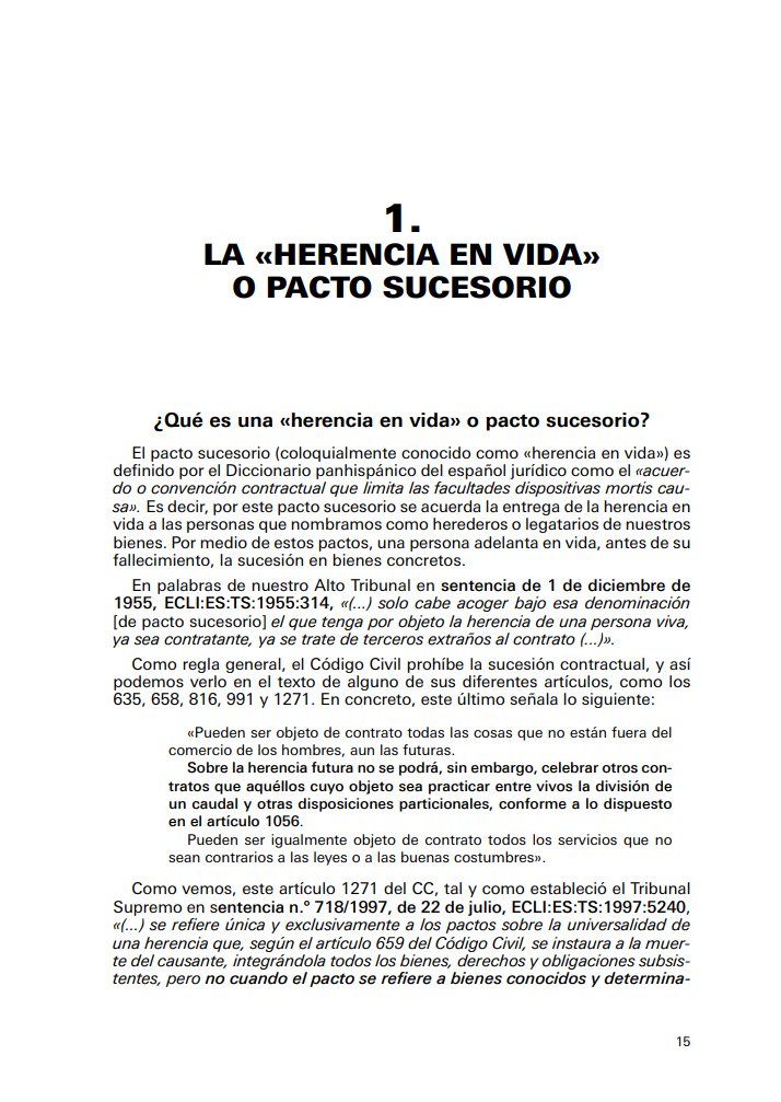 Este manual ofrece un análisis exhaustivo y actualizado sobre la figura de los pactos sucesorios, comúnmente denominados «herencias en vida». Se explora en profundidad el marco jurídico que permite a una persona adelantar su herencia, realizando atribuciones patrimoniales en vida con efectos tras su fallecimiento o incluso de presente. La guía distingue con claridad la regulación aplicable en el derecho común frente a las particularidades de los territorios con derecho civil especial o foral, como Aragón, Cataluña, Galicia o el País Vasco.