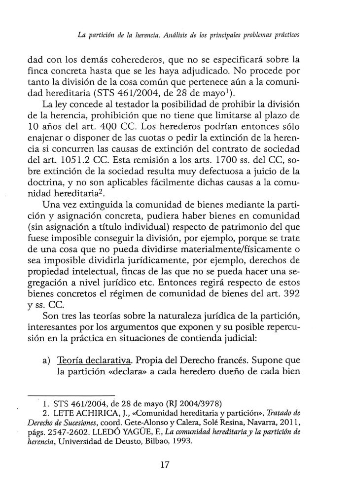 Destaca especialmente el tratamiento de la comunidad hereditaria y sus efectos. La autora disecciona la viabilidad de acciones procesales concretas, como el desahucio por precario entre coherederos, la acción de división de cosa común sin previa partición, o la nulidad de la partición por preterición de herederos forzosos o fraude. Todo ello sustentado en una selección de jurisprudencia actualizada, legible y directamente aplicable.
