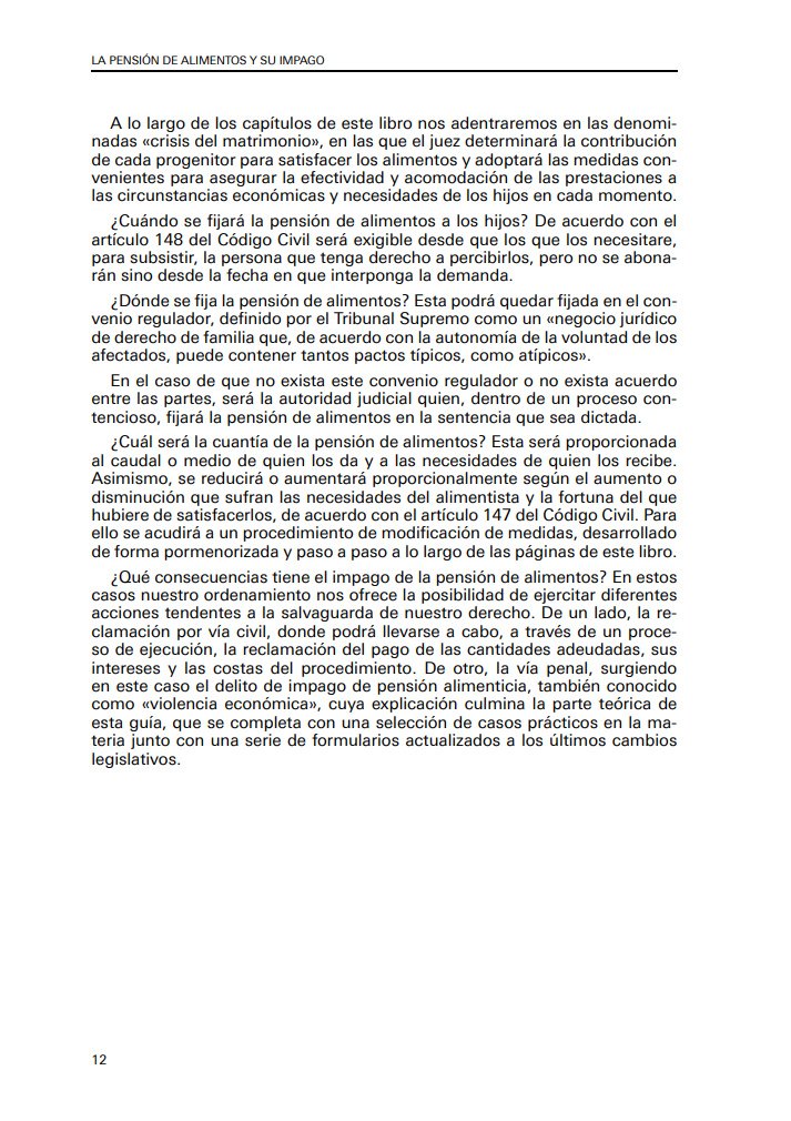 El valor diferencial de esta edición 2025 reside en su tratamiento dual del impago. Por un lado, detalla el procedimiento de ejecución civil para la reclamación de cantidades, intereses y costas. Por otro, aborda la vertiente penal del impago de pensiones, analizando los requisitos del tipo delictivo y su consideración actual como una forma de violencia económica, aspecto clave en la moderna dogmática penal familiar.
